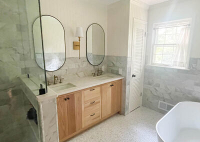 Before we transform your bathroom into a tranquil retreat, our dedicated team will walk through the space with you to ensure every desired change is noted and integrated into the design. Whether you’re a first-time homeowner or you’ve gone through a renovation before, it’s critical to work with a team that understands your unique style and functional needs. We are committed to creating a serene environment, so we pay meticulous attention to your preferences, aiming to elevate your home with a bathroom remodel that not only meets but exceeds your expectations for comfort and elegance.